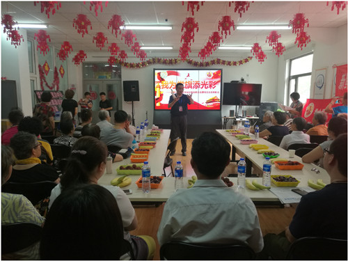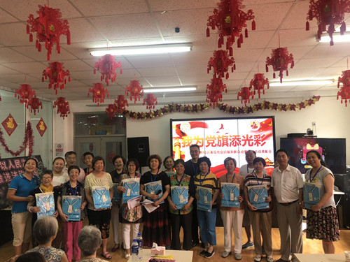 在党的生日即将来临之际,新鲜社区迎来了基层党组织服务项目的总结表彰会。2018年6月26日,北京爱众慈孝家园在新鲜社区党委、居委会的大力支持下,开展了“我为党旗添光彩”的爱老活动。一年来,一群退休志愿者活跃在社区,走街串巷,解决老人们遇到的一些实际困难,她们就是:新鲜社区爱心志愿服务队!今天,让我们一起感恩祖国、感恩党、感恩可敬可爱的社区志愿者们!
