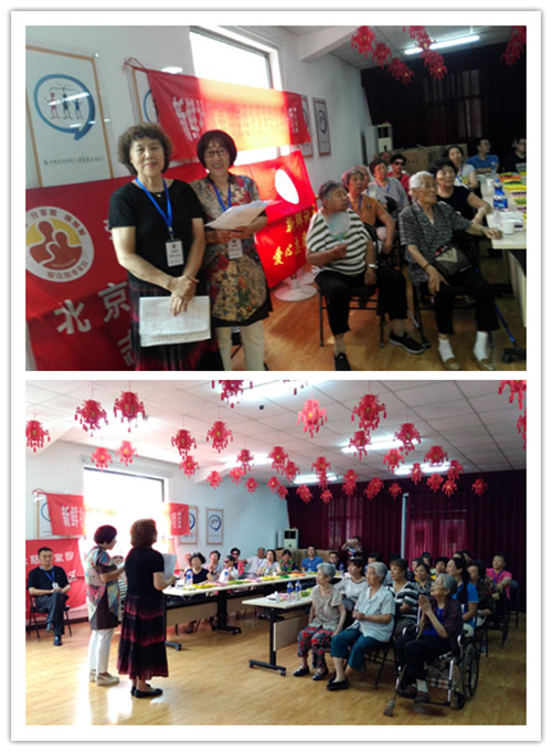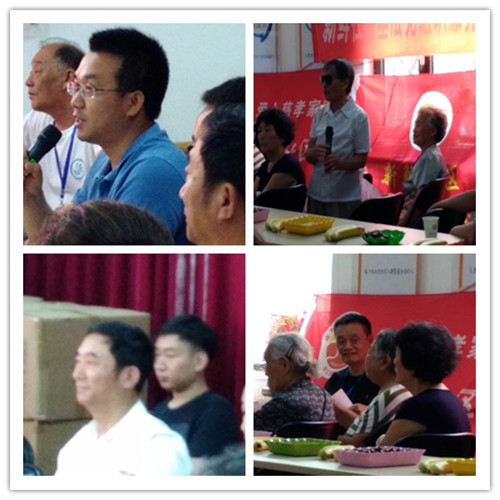 志愿者果凤苓感言:今天上午开完会后,我和刘艳霞推着轮椅把王哲英老人送至家中,一路上老人呼吸着新鲜空气,一边高兴的滔滔不绝:“你们志愿者太好了,我百分之二百的满意,这两年多我和老伴身体不行了,没有你们我活不到今天,太感谢你们了。”这是多有份量的话呀,这是对我们志愿者最多奖赏。说话间遇上二队的第一个发言的90多岁老人,她散会后柱着拐仗往家走,我们问她,今天高兴吗?她说:“高兴,非常高兴,也非常感谢候佑兰队长把我们这么大年龄人组织起来,给我们带来快乐,有了依靠,有了寄托,每天早晨有事干,她弃小家顾大家,为我们劳心费力,还有李老师教我们拍打全身穴位,让大家身体好,玩的好,太感谢她们了!”听了老人们句句实在话,对侯队长,李老师的赞扬,也证实了候队长所说,做为一名党员处处起到先锋模范作用,履行党员职责,一定把二队带好,坚持做下去。今天会上听到各级领导赞扬,各位家人认可,这两年志愿者在社区领导和爱众老师领导下做了大量工作,真正体会到志愿者助人自助,自利利他的志愿精神得己发扬光大!今天我为党旗添光彩大会开的非常成功,陈队长和两位主持人精彩演讲得到与会领导和志愿者们及老人们阵阵掌声。今天的会做到三满意,朝阳门街道社区领导和爱众家园领导的满意,受益的老人及家属满意、志愿者们满意。非常感谢领导组织了这次会议,搭建这个平台,聆听领导和老人们对志愿者由衷的感谢和认可,我们也非常高兴,今后我们会再接再励,做好我们的工作,更好地服务社会,服务于为老服务中!