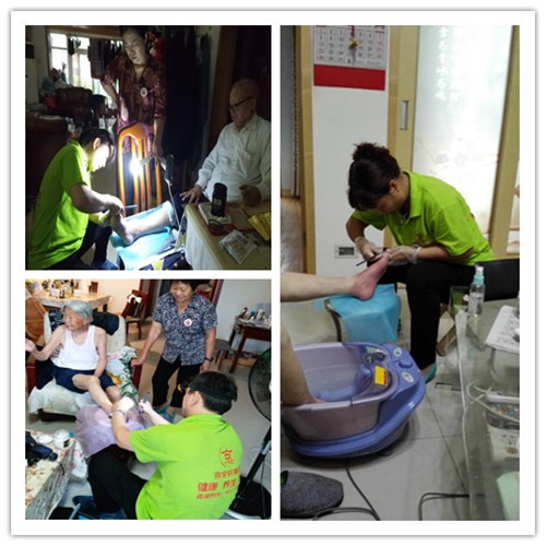 习近平总书记说:社区是基层基础,只有基础坚固,国家大厦才能稳固。为民的事没有小事,要把群众大大小小的事办好。要改革创新,完善基础治理,加强社区服务能力建设,更好为群众提供精准化精细化服务。爱众慈孝家园在精准精细化服务这方面已经走在了前进的道路上,2018年7月19日,枣苑社区为老服务志愿者团队在社区的大力支持下,联合社会力量开展了入户修脚服务。