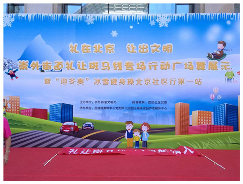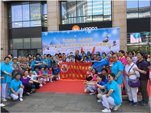 7月6日上午,北京东城区崇文门外街道在国瑞城商场门前开展了“迎冬奥”礼在北京让出文明—礼让斑马线专项行动广场舞展示暨冰雪健身操社区行活动。北京爱众慈孝家园作为承办方之一,参与了此次活动。