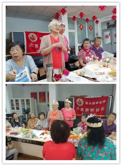 2018年7月18日,北京爱众慈孝家园在新鲜社区党委、居委会的大力支持下,为二季度过生日的志愿者们举行了集体庆生会!每次生日会,具有相当的纪念意义。志愿者们看到,一路走来,从最初的艰难起步,到今天的热闹场景,是这一份坚持、默默的努力的结果。志愿者用他们的奉献精神为老人们点亮了夕阳的霞光,这是里程碑,也是新起点,更是我们前进的动力。