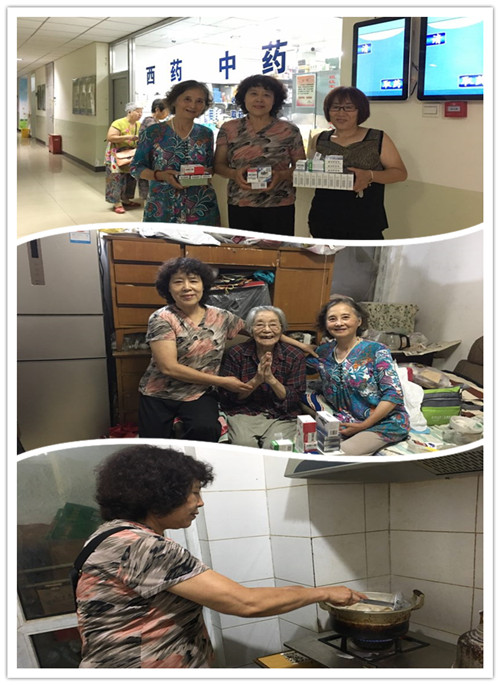 志愿者戴小丽感言:今年的夏天格外的热,但是再热也挡不住我们这支志愿者团队的姐妹们为本社区老党员送温暖,送爱心的脚步。每当我们爬上一个个四楼五楼的楼梯,敲开老人们的房门时,老人们都用惊讶的目光看着我们说:这么热的天,你们还来给我们送血压记和油,真是太感谢你们了。都是慌忙把我们让进屋里,看我们满脸汗水,立刻给我们开空调,开风扇,拿冰棍让我们吃。这也让我们很感动。通过我们的行动,让活在我们社区的老人们感受到党的关怀党的温暖,这也使我们感到很欣慰。很高兴能为他们作点事。我们同生活在一个社区,我们几乎是同龄人,我们是同一辈人,提起这一辈人就感觉格外亲切。就想在自已还有能力的情况下多为他们提供些帮助,希望他们晚年生活愉快。同时还想不断的吸纳社区的更多有能力有爱心的老人们加入到我们的团队中来,共同把我们的爱老助老活动搞的更有新意、更有影响力、更壮大,让爱充满整个社区。努力!