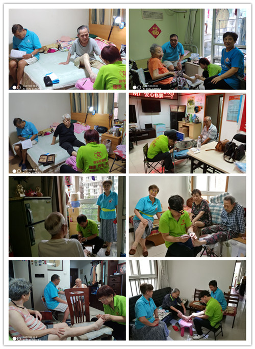 习近平总书记说:社区是基层基础,只有基础坚固,国家大厦才能稳固。为民的事没有小事,要把群众大大小小的事办好。要改革创新,完善基础治理,加强社区服务能力建设,更好为群众提供精准化精细化服务。北京爱众慈孝家园始终如一地跟随中国共产党的脚步,听从习总书记的指引,全心全意服务于人民。于2018年8月份,联手神仁服务队在国瑞城东区社区党委、居委会的大力支持下,继续针对社区志愿者及高龄老人开展爱心理发、修脚服务。