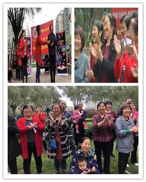 朱梅花和樊亲的《老两口学毛选》一下子把人们拉回到了60年代,也把活动推向了高潮,她们的精心准备给大家带来了阵阵笑声。樊亲的《改革开放》是她自己创作的,她把对美好社会的感激用歌声唱出了自己的心声。
