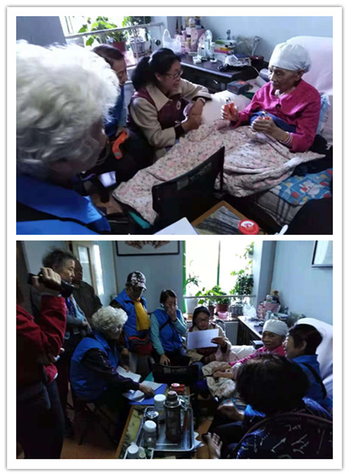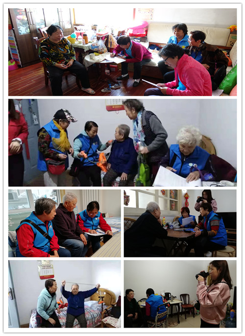 有与老人对话的、有登记的、有摄影的、有辅导动作的------