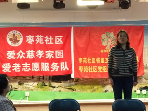 李书记、宋主任及社区志愿者们纷纷表示祝贺,感谢她们三位为团队为社区所做出的无私奉献,愿意一道努力使枣苑社区为老服务开展得更好!最令人印象深刻的是龙北和国中社区管委会负责人陈莲英及董淑琴现场分享她们团队走过来的经验和收获。