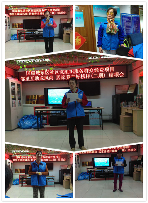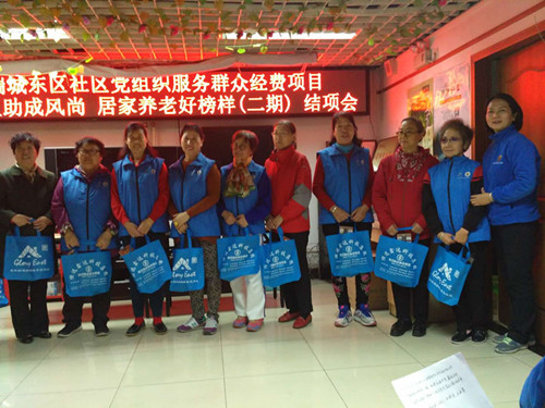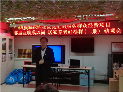 2017年11月-2018年10月,北京爱众慈孝家园承接国瑞城东区社区党组织服务群众经费项目——邻里互助成风尚 居家养老好榜样(二期)项目圆满完成!19日,举行了结项会,子项目“运动养生进家庭”,已经在社区生根发芽,成果可喜可贺!在这几个月中,得到了街道、社区以及社会各方面的大力支持和帮助,特此总结,回顾过去,展望未来。