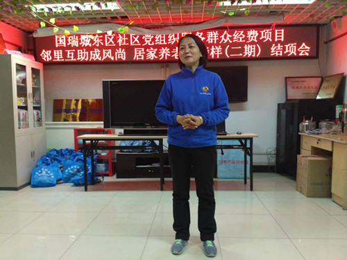 爱众慈孝家园的王菁老师做了总结,为今天的国东社区欣欣向荣的景象而自豪!王菁老师说:“亲爱的志愿者们,感恩大家又一年的付出,咱们国东家人们多才多艺,能人备出,做事儿一丝不苟,感动社区党委,也感动了爱众慈孝团队,我们深信,在管委会班子的带领下,我们国东社区会越来越团结,有凝聚力,服务他人,自己也受益,愉快地、有质量、有意义度过退休后的生活,谢谢你们,我们爱你们!感谢恒远鑫达科技集团为结项会提供的小礼品,送给志愿者!感谢悦享数字提供的项目数据分析动态图!"