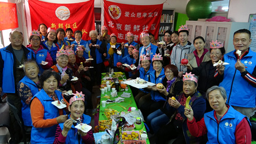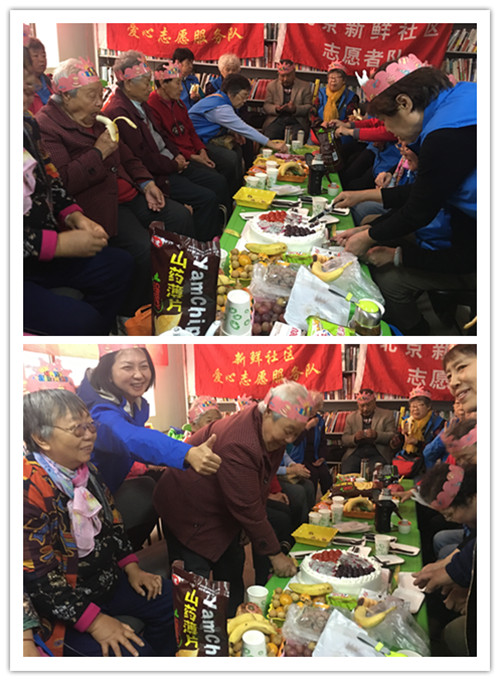 2018年10月24日上午,北京爱众慈孝家园联手新鲜社区党委、居委会共同为新鲜社区爱心志愿者团队、党员、知青代表、被服务老人、联大老师及党员大学生共同举办了一场“新鲜社区大家庭集体庆生会”,这样的庆生会还是头一次,热闹非凡,场面火爆,大家开心极了!