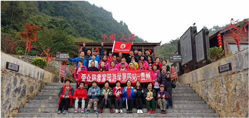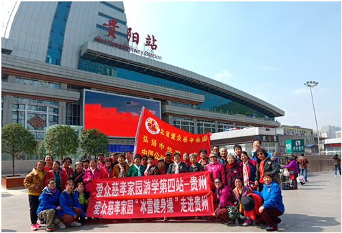 2018年10月26日-11月1日,“爱众慈孝家园游学第四站-贵州”起航了!北京多个社区的志愿者和山西爱众慈孝的家人们,40位伙伴从陌生到熟悉,游学潜移默化地影响着每一个人,大家都在践行“成为爱、分享爱、唤醒爱”的文化,成了相亲相爱的一家人!游学不仅极大的增强了团队凝聚力,而且把爱众慈孝精神、把迎冬奥赵之心老师的“冰雪健身操”传播到了祖国的四面八方。慈孝理念开启了人们的心与智慧,游学激发了志愿者们的生命活力,大家互为老师,相互学习,特别是高龄老人们、负责任的小组长们、孝顺的女儿文静、为大家照相的厉老师和景云、给大家刮痧、按摩的马老师常常成为人们嘴里夸赞的榜样,每个人都收获满满!
