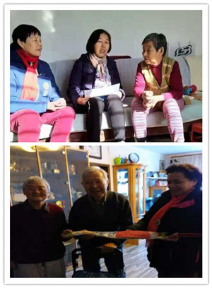 志愿者尉振兰感言:上午入户送长寿面,我和宋主任、历玉双老师去了李志老师家,老人精神饱满,热情的迎接我们,九十多岁的人还在玩电脑,在给老伴用照片写回忆录(他说用文字人老了太麻烦,用照片省事)多么超前的想象给了我们很大的启发,人,只要想做的事,去用心努力了,一定会达到预想结果。