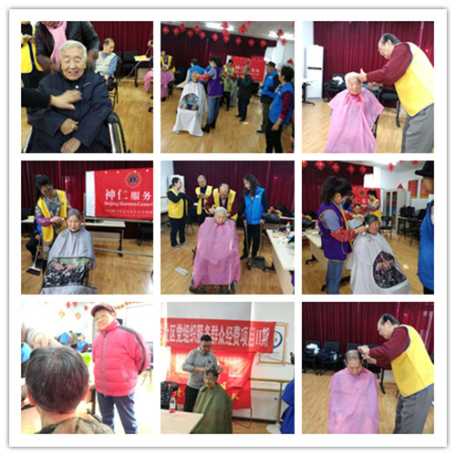 "神仁队"82岁的志愿者也加入到为老服务行列,边弯腰理发边和老人们聊天,问长问暖,和蔼可亲,精进认真的作风感染了所有人!