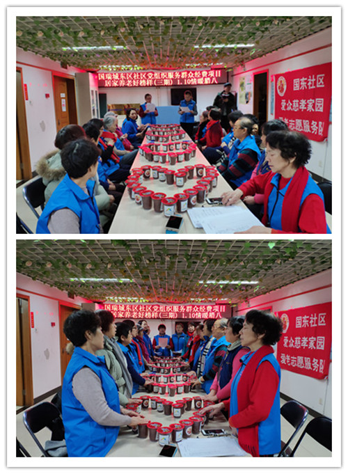 腊八节,顾名思义就是在腊月初八的节日,传说这个节日起源于中国古代的祭祀活动。转眼间,这个节日在中国流传至今。2019年1月10日,北京爱众慈孝家园承接的国瑞城东区党组织服务群众经费三期项目,在社区党委、居委会的大力支持下,开展了“情暖腊八”的活动。通过活动,弘扬传统文化,让社区老人再次深切感受来自社区、社会大家庭的温暖!