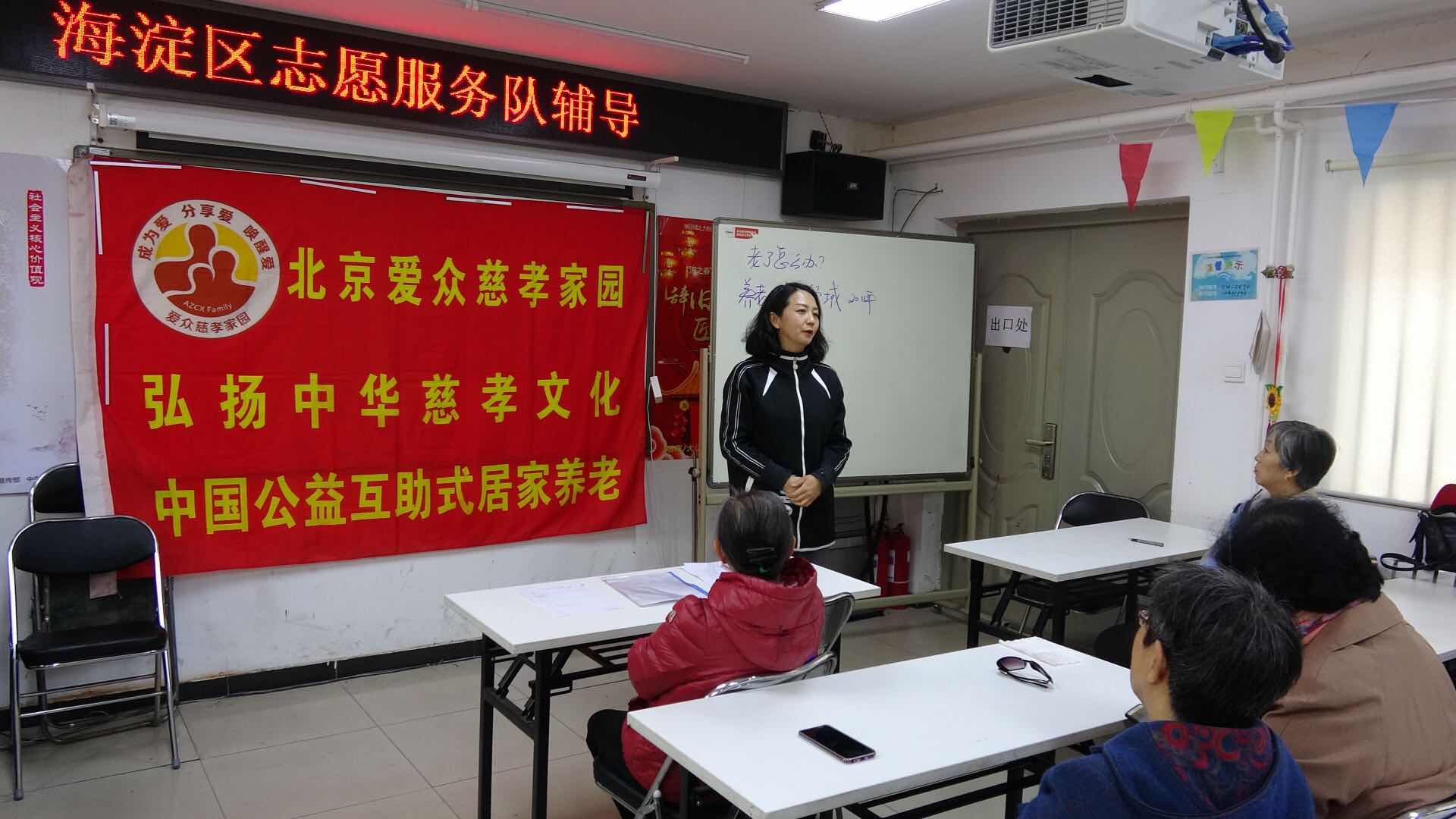 2019年3月20日,海淀区志愿服务孵化平台联手北京爱众慈孝家园,在知春里西社区党委、居委会的大力支持和帮助下,开展了海淀区便民志愿服务队试点项目在本社区的最后一次孵化培训工作!