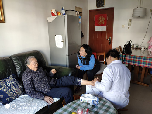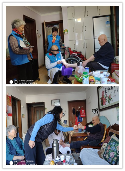 最后到了5年前得了血栓,现在右侧身体不便的、84岁的李大爷家,大爷说话很困难,所以双手作揖表达他的感谢之情。社区志愿者也是他们家里的常客,老伴吕大妈不把志愿者当外人,心疼地说大爷不听话、不爱锻炼之类的。志愿者们分享了开展过的“运动养生进家庭”项目中,和他情况类似而取得了较好康复效果的身边故事,以及无论身体状况怎样,每一天都积极生活的运动康复理念,看到大爷几次点头,王菁老师顺势开玩笑地说:“听话哈,大爷,以后您要每天花点时间锻炼右边身体啊,要不,下回就不给您修脚了呢”,大爷一边笑着一边连连点头,老师走上前要和他拉钩,他伸出的手就是给予我们志愿者的信任与陪伴!公益事业就是一个谁参与谁受益、很美好的事儿,王菁老师表示:很感恩身边老年志愿者们几年来的榜样示范!