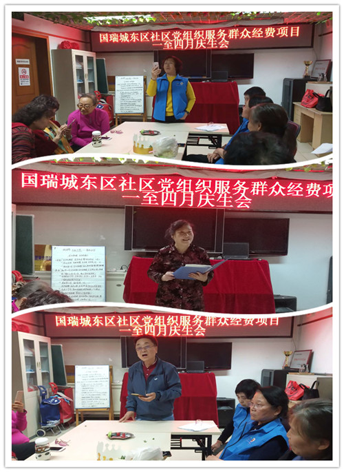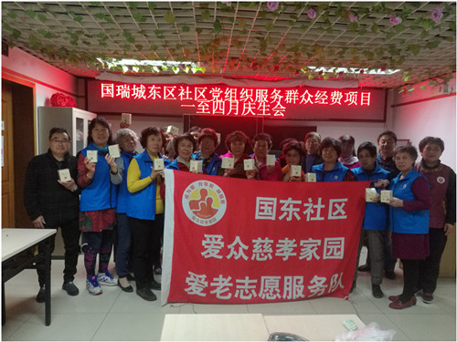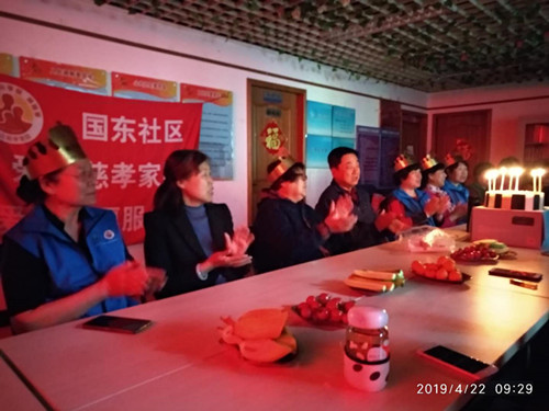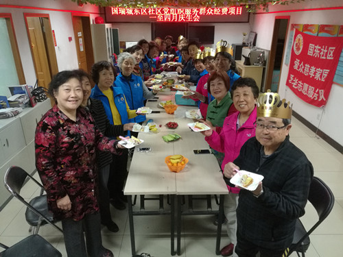 2019年4月22日上午,北京爱众慈孝家园承接的国瑞城东区党组织服务群众经费项目——“邻里互助成风尚 居家养老好榜样(三期)”, 为1—4月生日的志愿者举办的集体庆生会,场面热闹温馨。通过本项目的开展,激发了社区志愿者的服务热情,增强团队归属感,同时构建了和谐的幸福社区。