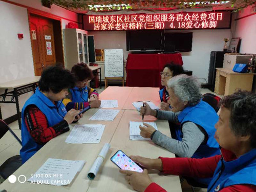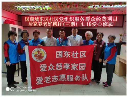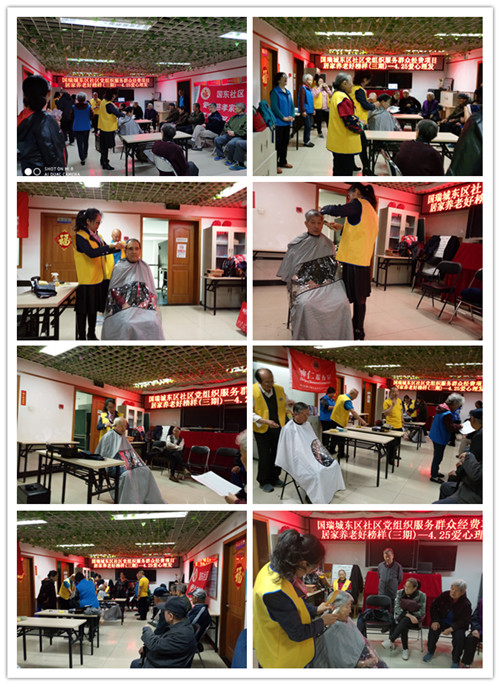 2019年4月份,北京爱众慈孝家园承接的国瑞城东区党组织服务群众经费项目——“邻里互助成风尚 居家养老好榜样(三期)”,在社区党委、居委会的大力支持下,开展“爱心修脚 爱心理发”公益活动。每次活动,志愿者们和老人们充分交流、沟通,传递正能量!大家一致表示:参与公益,服务别人,快乐自己,越来越年轻!