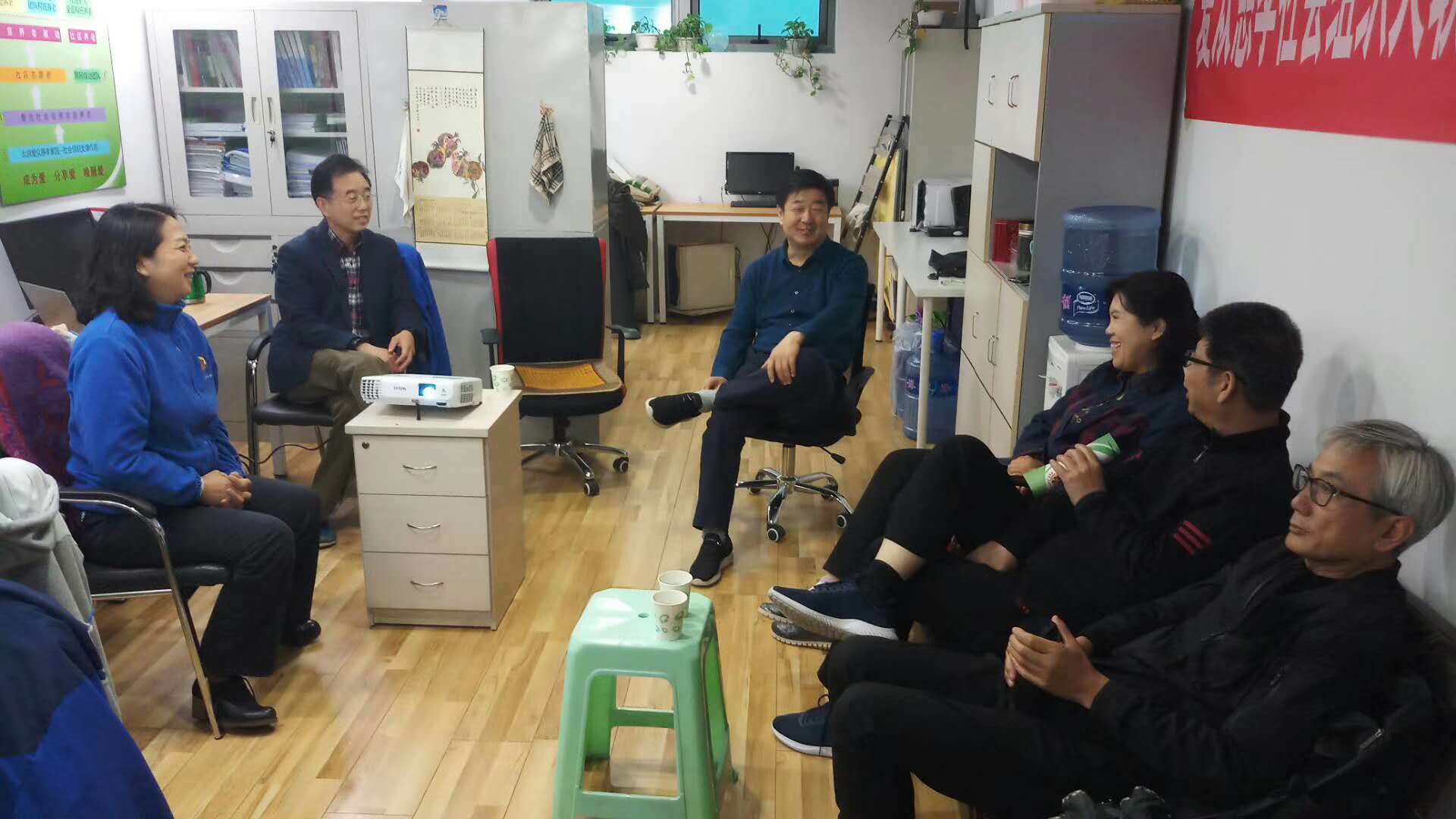2019年4月24日居家养老分会的总干事王主任、王司长、李老师及郭老师来北京爱众慈孝家园考察,双方探讨了互助养老的模式,并确定在贫困地区的养老--健康--培育自治团队等方面的精准帮扶项目上合作。谢谢各位领导的支持!