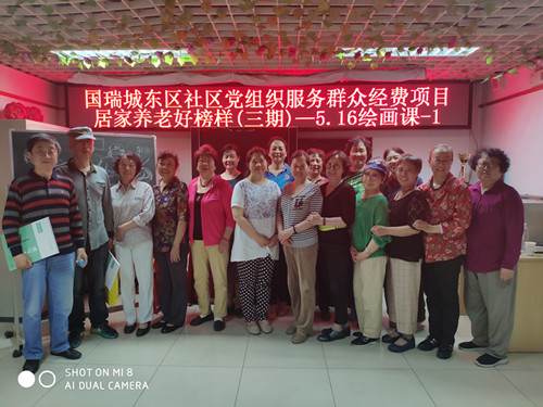2019年5月16日,北京爱众慈孝家园承接的国瑞城东区党组织服务群众经费项目——“邻里互助成风尚 居家养老好榜样(三期)”,在社区党委、居委会的大力支持下,开展“绘画课”活动。 活动宗旨:让老年人发现生活之美,体验多姿多彩的世界,培养对绘画的兴趣,同时也给社区老年人提供一个交流分享的机会。