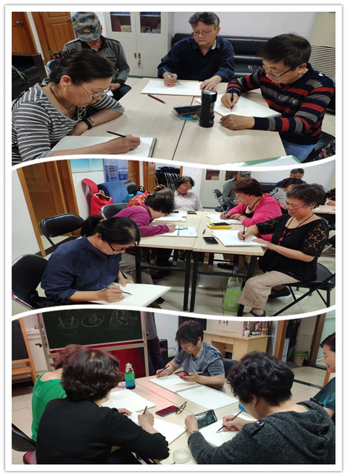 老师声情并茂、通俗易懂的讲解方式很快引起了大家的关注,老人们已经完全被吸引到画画的世界中,大家都全神贯注的投入到课堂中。