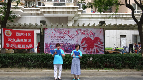 国东区社区爱众慈孝家园志愿服务队带来手语歌《我们是一家人》,充分展示出了团队风貌的同时,也完美地诠释本次活动的核心思想,并吸引了很多居民前来参与。