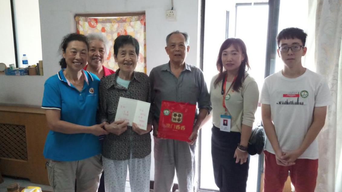 今天的活动是给两位老人送月饼。两位老人身体良好,有一个半天保姆照顾,在于老人的交谈中深刻感受到来自党的温暖,一句“只有党会关怀我们”更是让大家感动。这次中秋前期的志愿活动让我们感受颇深,希望下次能继续参与。