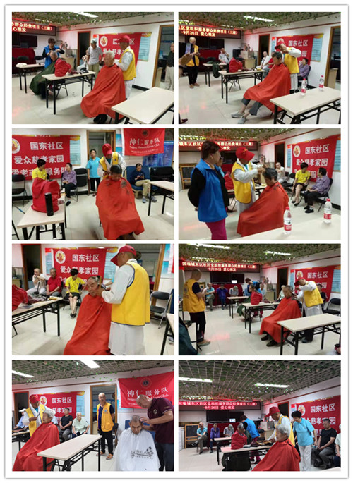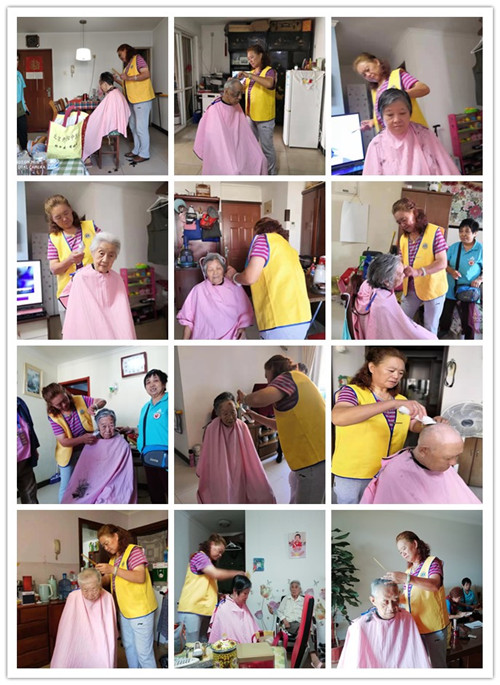 志愿者们一边理发一边和他们唠着家常,欢声笑语,其乐融融,为老人带来清凉,受到老人们的热烈欢迎。