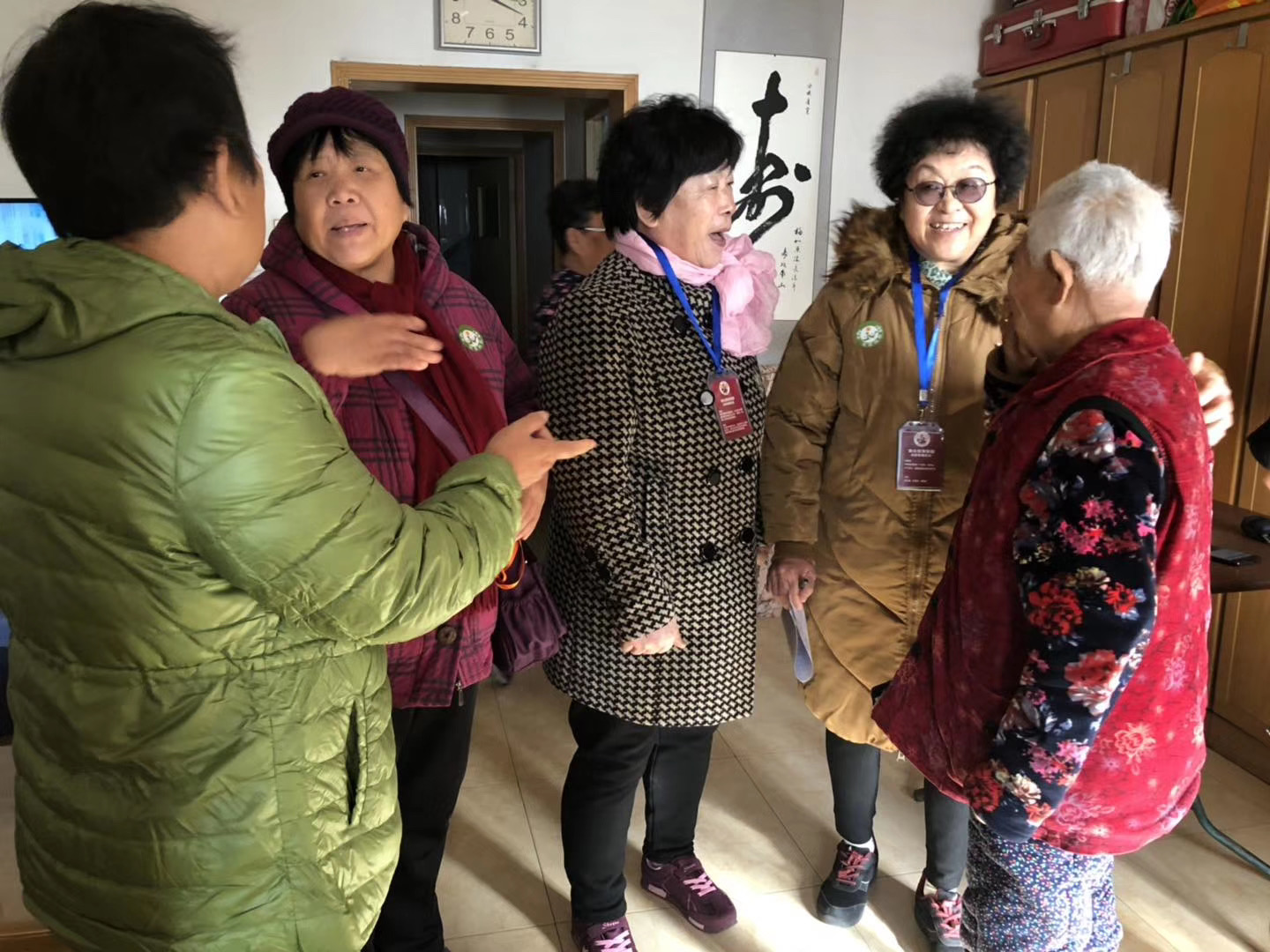 志愿者王秀玲感言:谢谢望园社区党委,谢谢爱众慈孝家园的各位老师,你们提供了互助养老平台,帮助我们健身,促进邻里关系,认识了来自不同地区的姐妹,参加了互助养老志愿服务队,做公益事业,奉献我们的爱心。我们通过入户拜访高龄老人,体会到互助养老的重要性,老人感觉到社区党委的关怀,我们从长辈们身上学到对生活的态度,平淡、乐观。