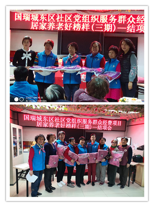 2018年11月1日至2019年10月31日,国瑞城东区党组织服务群众经费项目——“邻里互助成风尚 居家养老好榜样(三期)”圆满结束了。本项目一如既往地到了国瑞城东区社区党委、居委会的大力支持和帮助,得到志愿者们高度认可并积极参与。大家献计献策,做出了互助式居家养老榜样的同时,无论是个人,还是团队,总体思想认识水平和能力都得到了很大提升。
