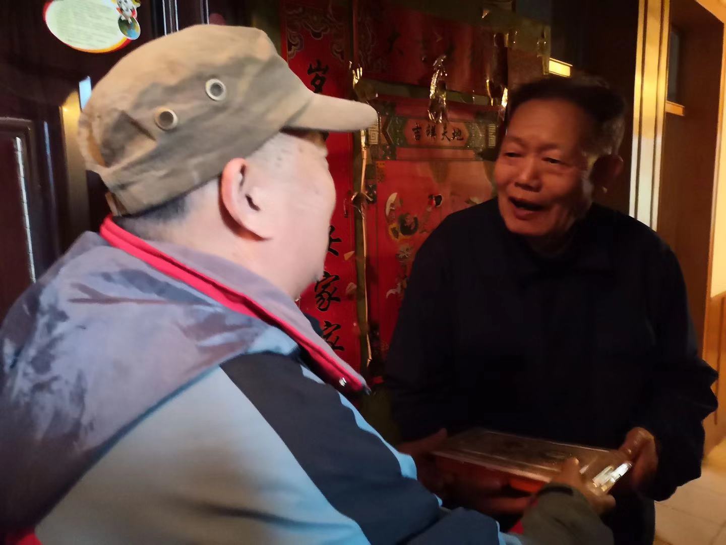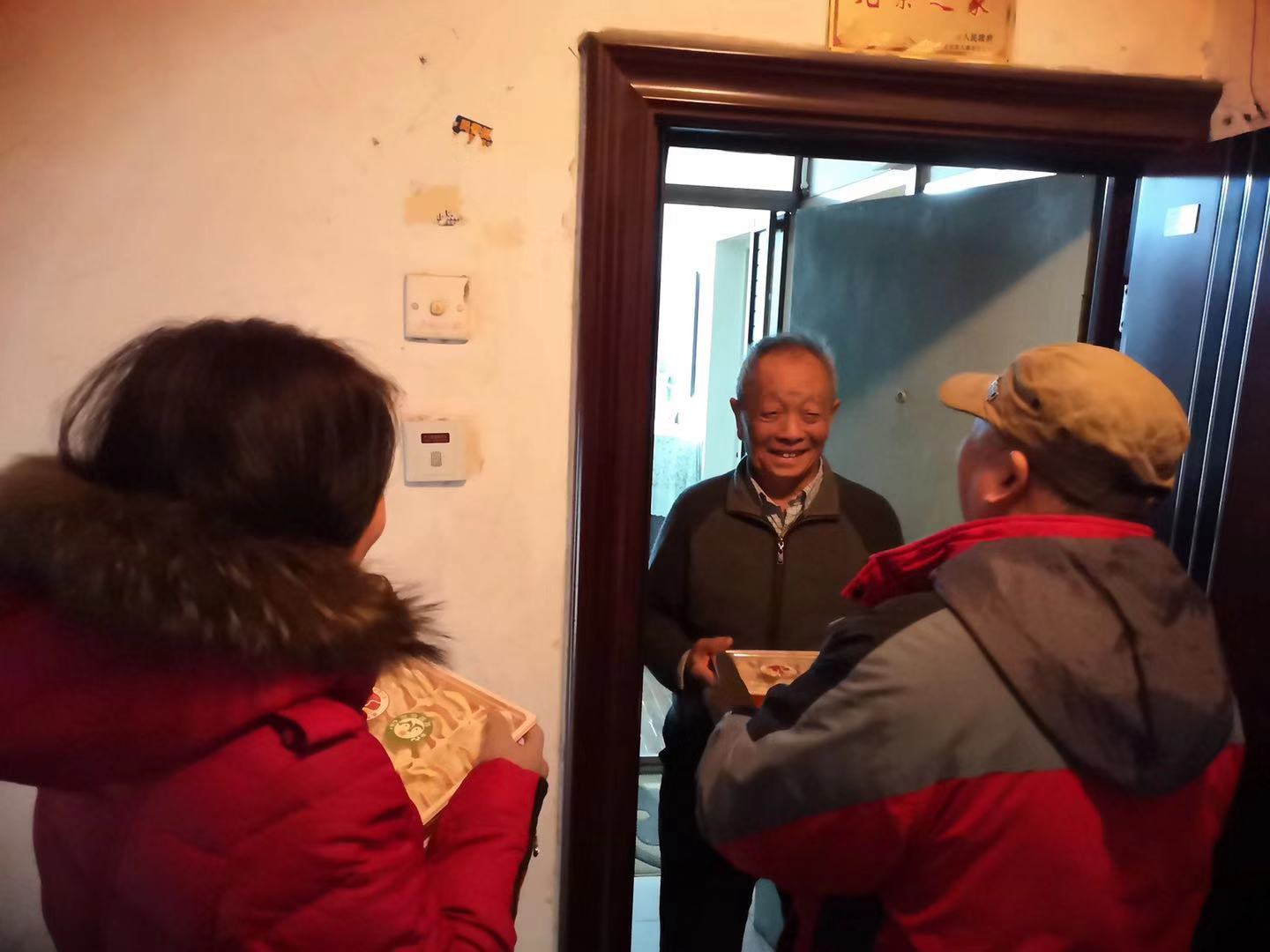 今天虽然外面飘着雪花,也没能阻止我们志愿者为社区高龄老人入户送冬至暖心饺子的脚步,我们每到一户都让社区的老人感动,老人们听说这是社区党委组织志愿者亲自包的饺子,老人手捧饺子激动的说,感谢党,感谢社区党委,感谢志愿者,外面下着雪你们还给我们送饺子,让我们说什么好呦,我们说这是我们应该做的,临走老人开着门一直目送我们到看不见人影,走到楼下才听到老人把门关上,老人太需要我们的关爱啦!让我们成为爱,分享爱唤醒爱!