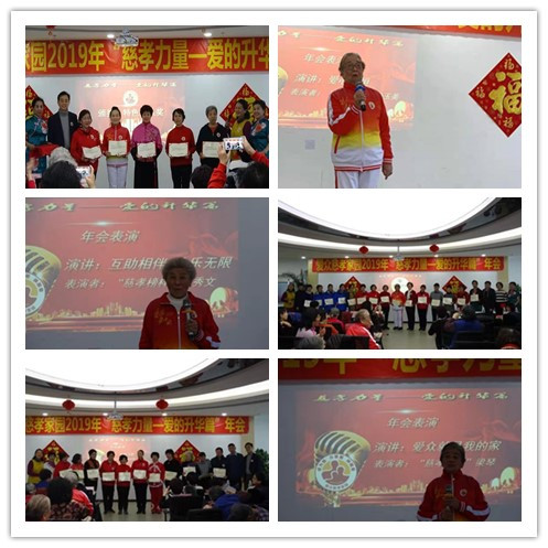 张君佐老师真诚、暖心的致辞后,北京爱众慈孝家园的麻国华老师做了精彩的2019年工作总结及对2020年的展望。平均年龄接近70岁的六位主持人也成为年会的一大亮点,可敬可爱的社区志愿者们也借此机缘尽情展示出了自己的生命活力!