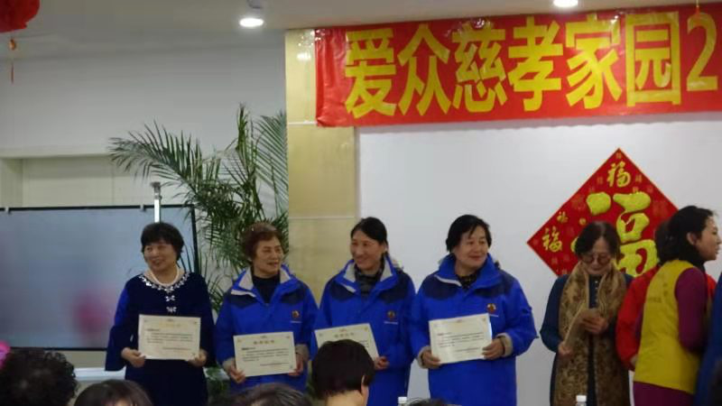 志愿者温淑敏感言:我参加了2019年爱众慈孝家国的年会,很是感动!回顾建队以来,我们走过了3年了,在这3年里从开始的锻身体,家访探望,搞些节日的慰问,如包饺子、送腊八粥、包粽子等这些活动。成长是靠实践,也是要与实共进的。我们参加了学习,如“了凡四训”、王阳明、还有日本稻盛和夫等文章,这使我们队伍起到了质的变化。大家开始了学习不忘初心,互相讨论,互相关心,姐妹们也更加团结。做完操后,大家不管有事没事的,都想聊上一会,一起去买买东西,一起公园,一起做些公益活动。总之,眼界开阔了,姐妹之间有了的感情,也当成了我的第二个家。梁老师的家成了这些老人的会所,我们的队伍都年岁比较大的,有89岁的孙大姐,81岁吕老师,在助人为乐方面做的呱呱叫,董老师、王建国是好帶头人!聋哑人王大姐有病,但一直坚持参加活动。总之,开完年会以后,我们的目标更明确,就要发挥互助养老精神,让老人幸福快乐地渡过晚年!