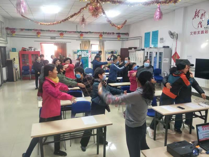 麻国华老师.王菁老师和高玉萍老师走进青龙桥街道福缘门社区开展了六场《社区治理,幸福你我》《义工团队归属感》《沟通八要诀》《认识和管理情绪》《教授冰雪健身操》《一念之转》课程和两场《团建系列活动》《义工交流会活动》活动。