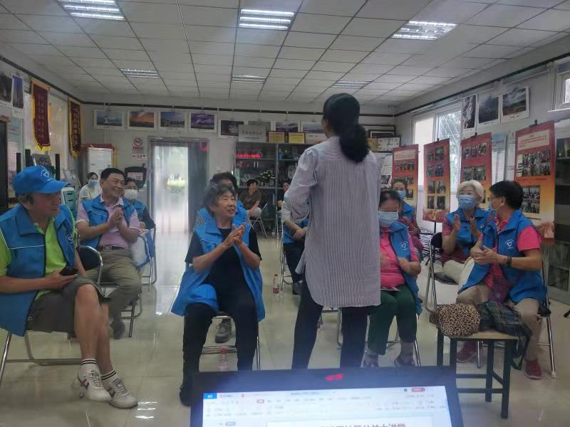 社区居委会的报道中写到:“海淀公益大讲堂的王老师和麻老师深入社区一线,为大家带来了一场感人至深的公益讲座。”在课堂上王老师从中国人口日渐老龄化,到中国社会养老缺口巨大,从独生子女照顾老人的实际困难,到老人们追求幸福晚年的迫切需求,通过一个个鲜活的事例给队员们阐述了志愿者工作的重要性,让每一位队员都倍感责任在身。