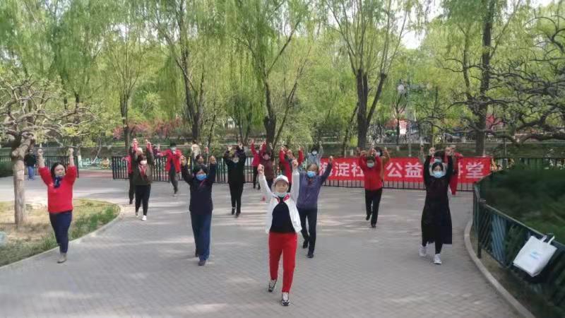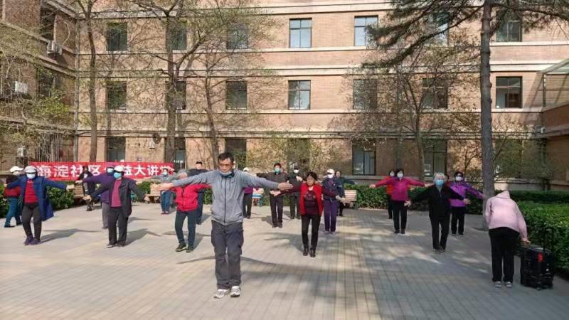 2021年4月15日上午海淀社区大讲堂走进紫竹院街道北洼路社区为社区居民及志愿者开展了赵之心老师《冰雪健身操》的教授活动。