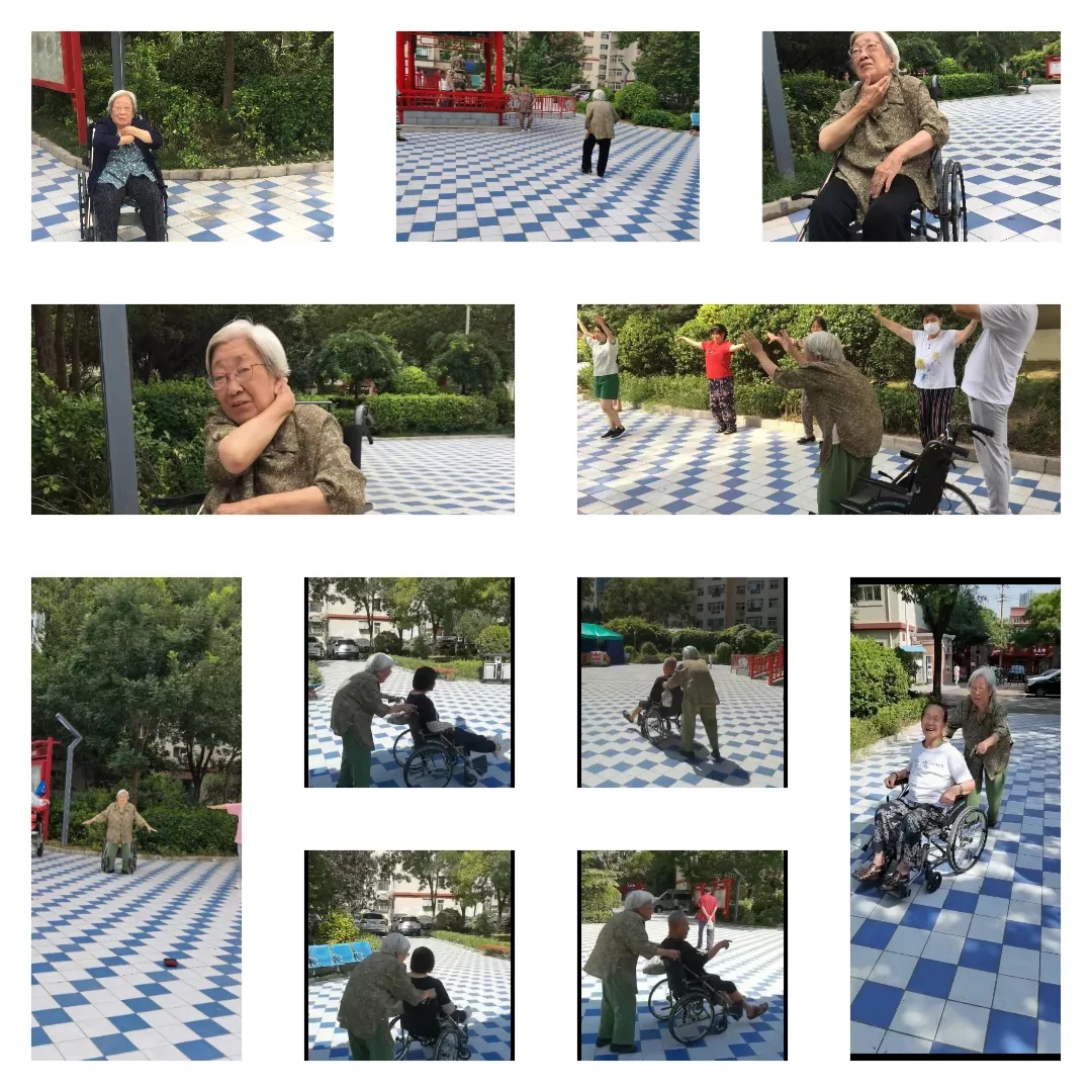 贾大姐也是坐在轮椅上的,6月1日她在老伴和穆大姐的陪伴下加入我们团队,穆大姐和我们分享了贾大姐的变化:原来的贾大姐对吃的和穿的都没要求,现在手绢和衣服脏了也要求给洗洗换换,对吃也有要求了。贾大姐特别喜欢唱歌,刚开始给我们唱到第2首歌的时候口水就会流出来,现在一口气唱3首歌也不流口水了,更牛的是贾大姐偏瘫的右腿居然有力气了,健身队的姐妹们也不断的鼓励她,贾大姐现在在别人的搀扶下能走路了。