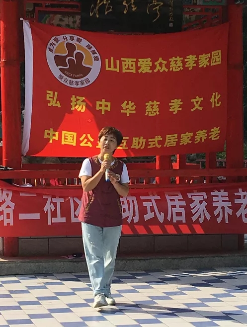 山西爱众慈孝家园发起人康老师也做了分享:在陪伴老人,为老人付出的同时,自己是最大的受益者,自己的身体,家庭都越来越幸福。希望互助互爱真正的成为大家的生活方式,老人能够在自己家自己的社区非常幸福的养老。