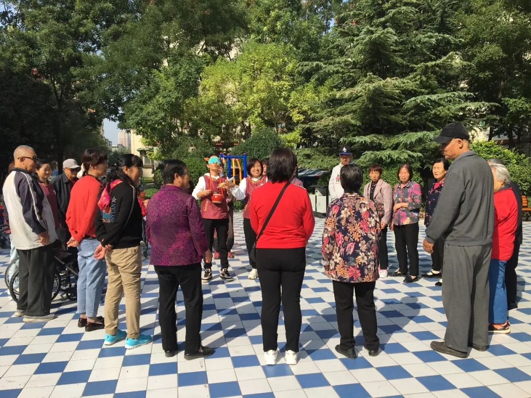 范老师分享:长治路二社区互助式居家养老健身队迎国庆活动,在9月29日早上大家的共同期待下开启了。经过几个月的坚持锻炼团队中的大哥大姐们身体与心理都发生了变化,对团队的维护和参与度也越来越积极,这都是因为大家彼此的陪伴而形成的。在活动前一天有幸与康老师一起去北京,深入社区,参与社区的身体与心理的检测全过程。在此过程中与社区的社干和志愿者们有密切的接触,能感受到他们身上散发出来的利他情怀。果然经过测试志愿者团队的中老年人身体指标与心理指标都特别的好,正如康老师所说,付出的同时我们一定是最大的受益者,在帮助他人的过程中让自己的价值得以展现,身心愉悦身体健康,家庭氛围也在悄然发生改变。我们团队中的大哥大姐们本质上都具有付出的精神,也如雨后春笋般在不停的冒出来,相信在社区领导的关怀下,在爱众慈孝文化的滋养下,在大家的共同努力下,我们团队也将建立起一支有付出与奉献精神的自愿者自治团队,让我们把自身都具备的传统美德发扬光大,让社区每一位中老年朋友们都老有所乐、老有所养、老有所依、老有所为。